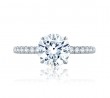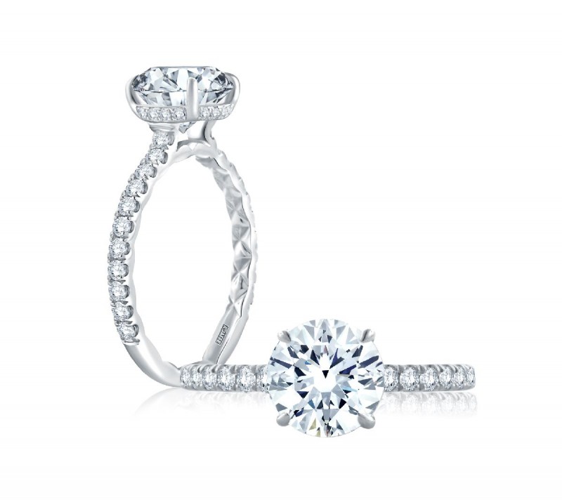 From our signature Classics Collection comes the timeless Statement Round Quilted Platinum engagement ring with a diamond pavé shank and diamond pavé bridge. With minimal distractions, the focus is on the center solitaire diamond, which is lifted high above the ring for a dramatic look that perfectly captures the light. A modern way to wear the most classic of engagement ring styles. Total carat weight: 0.44 ctw.