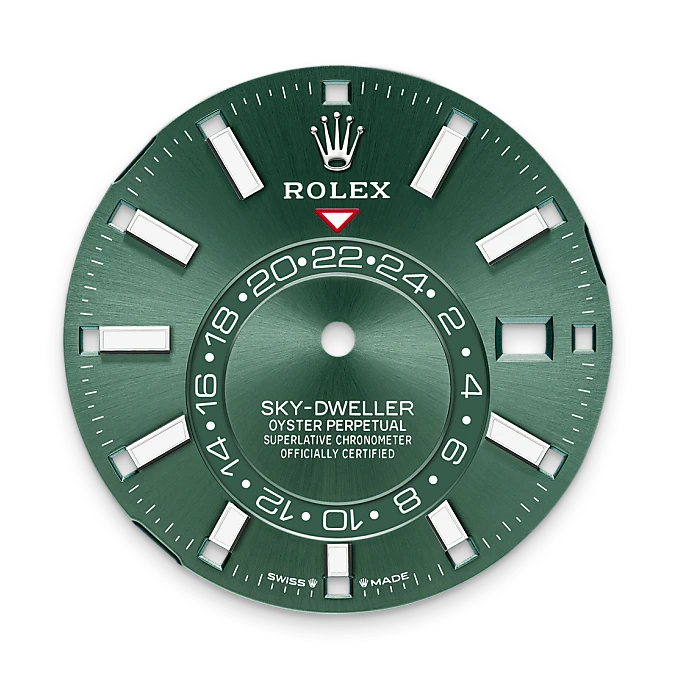 The Rolex fluted bezel is a mark of distinction. Originally, the fluting of the Oyster bezel had a functional purpose: it served to screw the bezel onto the case, helping to ensure the waterproofness of the watch. It was therefore identical to the fluting on the case back, which was also screwed onto the case for waterproofness, using specific Rolex tools. Over time, the fluting became an aesthetic element, a genuine Rolex signature feature. Today the fluted bezel is a mark of distinction, always in gold. The Sky-Dweller is equipped with a mechanism of interaction between the rotatable bezel, the winding crown and the movement: the Ring Command system, which allows the user to select the watch's functions one-by-one and to set them easily, quickly and securely.