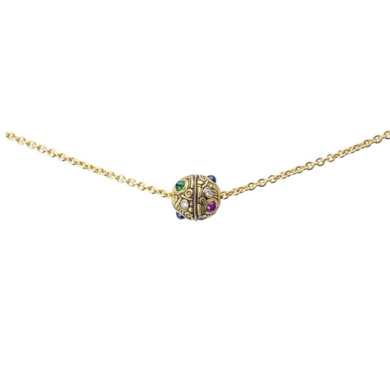 18kt Yellow Gold and Cabochon Multi-Gemstone Ball Pendant Necklace designed by Alex Sepkus.