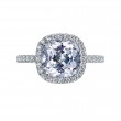 This perfectly elevated halo engagement ring has, set in platinum, 58 round brilliant cut diamonds weighing 0.43 carats total. Also available in 18 karat white, yellow or rose gold. (Center stone priced separately).