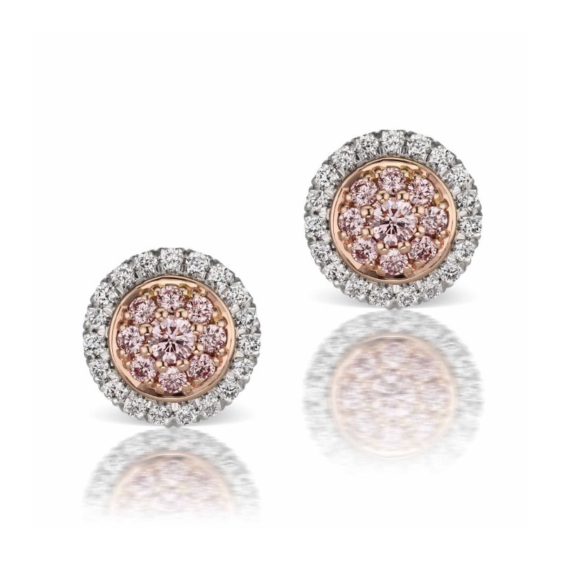 Platinum and 18kt Rose Gold Argyle Pink Diamond and White Diamond Halo Earrings. Argyle Pink Diamonds=0.30ttcw,D=0.23ttcw